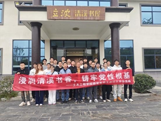 为深入学习贯彻习近平新时代中国特色社会主义思想和党的二十大精神,扎实推进基层党建工作创新,强化党支部组织力与凝聚力,10月16日,土木工程学院研究生党支部全体党员前往清溪村立波清溪书屋(以下简称“立波书屋”),开展以“浸润清溪书香,铸牢党性根基”为主题的特色党日活动。学院副院长刘劲指导参与活动,立波书屋管理员卜雪斌热情接待并陪同交流。